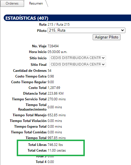 De ser necesario puedes ampliar los parametros los datos de peso y cestas de los vehiculos para poder secuenciar las ordenes restantes, con este punto puedes consultar si en SGR se realizo alguna modificaciones en los datos de las cestas porque en las ultimas semanas nos han compartido al menos 2 casos de este tipo donde los viajes llegaron a su limite de cestas.